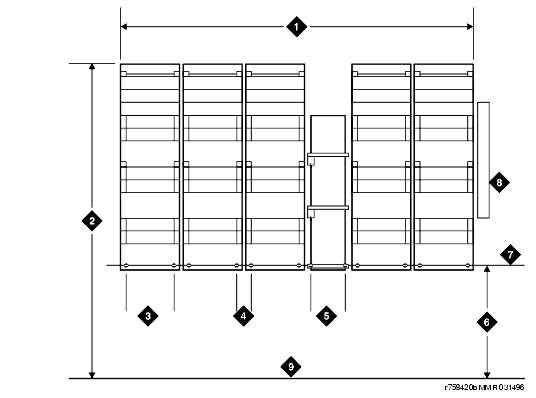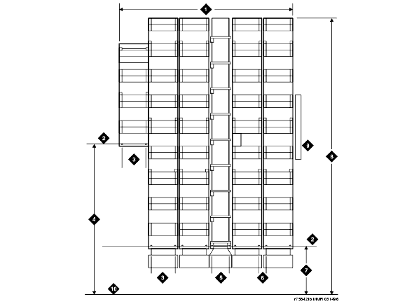 The 110A-type terminal blocks can be stacked in almost any arrangement at any height or location on the wall. One arrangement is shown in 110A-Type Terminal Blocks (300-Pair). The distance between the mounting screw holes on the terminal blocks is 10.8 in. (27.4 cm). If a vertical patch cord trough is used, the distance between the mounting screw holes is 5.31 in. (13.3 cm).