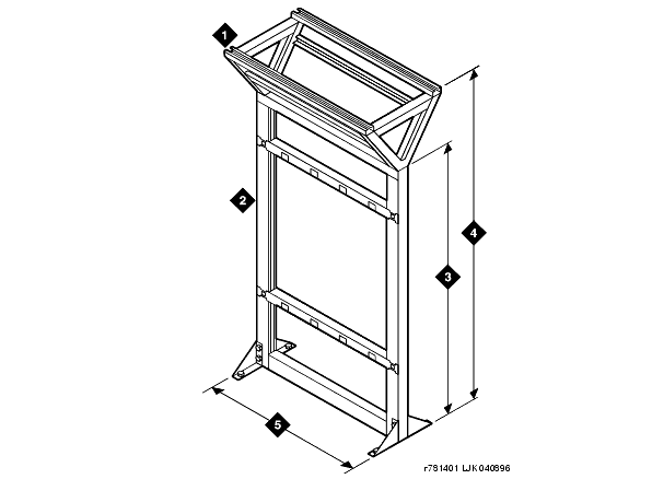Each 1110A2 provides the space to mount 5 terminal blocks/patch cord troughs on each side of the frame. A cable support structure, apparatus mounting 1110C1, mounts directly on top of the 1110A2 and provides support for all cables routed to and from the frame. See Apparatus Mounting Frame Information