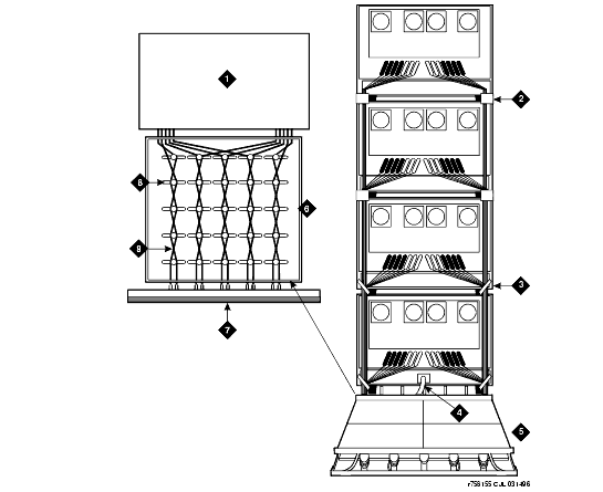 - Place the Z113A Cable Slack Manager against the wall under the MDF. See Cable Routing Through Cable Slack Manager (SCC1). Align the left side of the cable slack manager with the first terminal block of the trunk/auxiliary field.