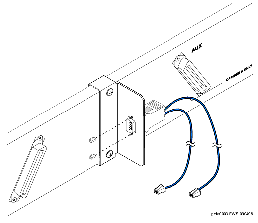 13. Connect the cable to the front of the TN1648B circuit pack. See Connect the Cable to the TN1648B Circuit Pack.