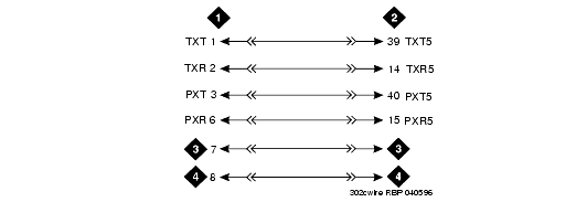 4. Install cross-connect jumpers to wire the terminal to the port circuit pack. See 302C1 to 4-wire DCP Wiring. This pinout is for the 4-wire Digital Line circuit pack.