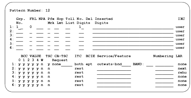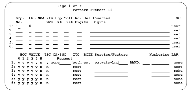 - On the Route Pattern screen, in Grp. No. field, enter the CAMA trunk group number.