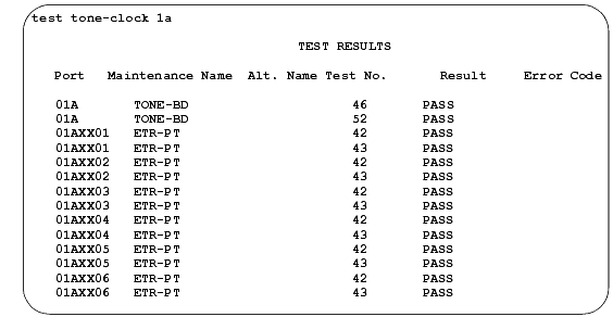 - Verify page 1 displays the test results similar to Sample Test Results for Tone-Clock 1A.