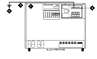 - At the DC Power Cabinet, connect a 1 AWG (#70) (7 mm 2) ground wire to the GROUND DISCHARGE bar. See DC Power Cabinet Grounding.