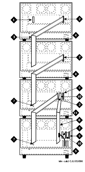 - Connect the supplied Time Division Multiplexing (TDM) Bus Cables (WP-91716 L3) from Cabinet A to Cabinet B as shown.