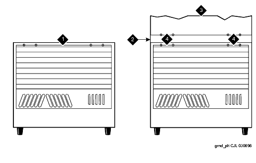 - Repeat Steps 1-3 until the rear ground plates are installed between all stacked cabinets.