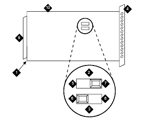 Set the switches on the circuit pack to select bit rate and impedance match. See Option Switch Settings on TN464/2464 and TN464/2464 Option Settings.