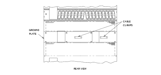 Locations of ground plate and cable clamps on single-carrier cabinet