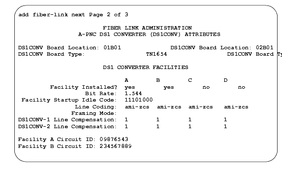 - Bit Rate -- Displays when the DS1 Converter circuit pack is TN1654. Enter either 1.544 for domestic T1 operation or 2.048 for international E1 operation.