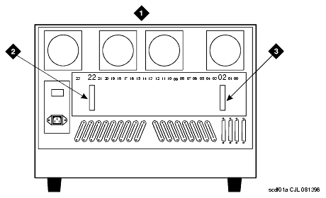 - Install the 2 AHF110 TDM/LAN bus terminators in slots 02 and 20 of the cabinet (see Location of TDM/LAN bus terminators).
