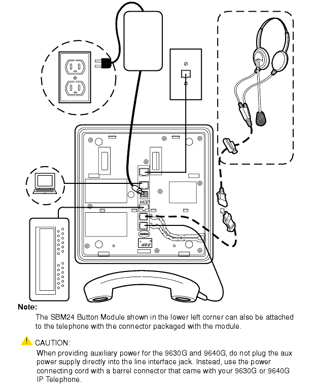 Important: The last step in assembling the 9600 Series IP Telephone must be applying power. Apply power either by plugging the power cord into the power source (local powering) or plugging the modular line cord into the Ethernet wall jack (IEEE powering).