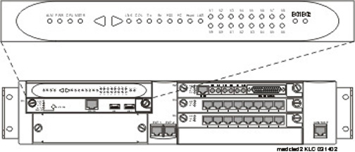 As shown in Figure 12, the LED panel is located on the top left corner of the G700. Directly below the LED panel is Media Module slot V1, which can be occupied by any type of Media Module. However, the S8300 Media Server can reside only in this particular slot because of height restrictions (for a specific discussion of the S8300 LEDs, please see S8300 Media Server LEDs.