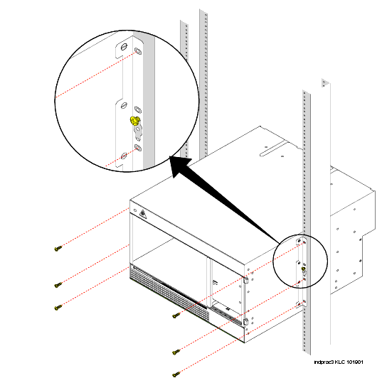 NOTE: Follow the same steps to install the media gateway with mounting bracket in the medial position. See Mounting the media gateway in medial position..