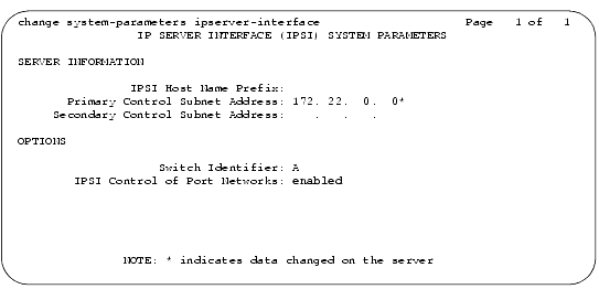 An Asterisk (*) to the right of the Subnet Address field means that although a subnet address is displayed, it is not the correct one; the Avaya MultiVantage call processing software does not have the subnet information. After verifying the displayed information, submit this form with or without changes to update the Avaya MultiVantage software with the correct subnet information.