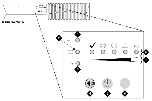 For more information on the LEDs, refer to the UPS user's guide that comes with the Powerware 9125 UPS.