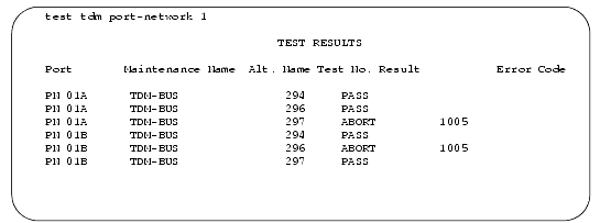 - Verify a test results screen similar to Sample Test Results for TDM Bus Port Network 1 is displayed.