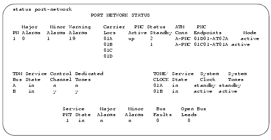 - If any problems are indicated, check the TDM cables and the inter-cabinet cables (ICC) in the associated port network.