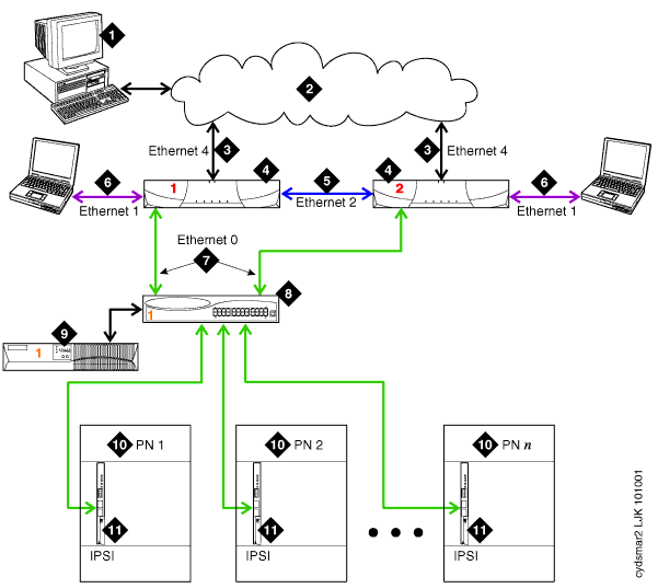 Ethernet switch. At least one is always required to support the S8700 media server's control network. If many port networks are present, two Ethernet switches may be daisy-chained together to provide sufficient Ethernet connections to the IPSI boards in the port networks.