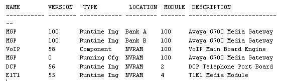 Privilege: All Description: dir The dir command is used to show the files that have been downloaded to the MG per the G700 MG Download interface and the SNMP MIB. Parameter: None