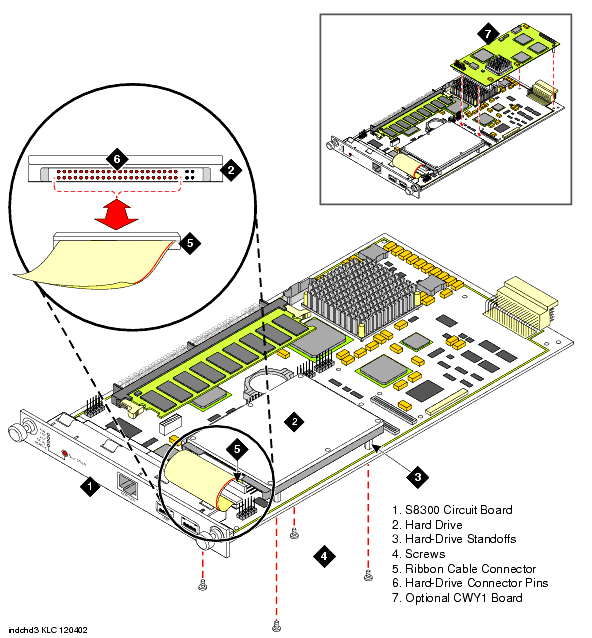 CAUTION: Be sure to wear a properly grounded ESD wrist strap when handling the S8300 circuit board, hard drive, and CWY1. Place all components on a grounded, static-free surface when working on them. When picking up the hard drive, be sure to hold it only on the edges -- do not touch the bottom of the hard drive.