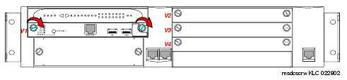 - Secure the S8300 faceplate with the thumb screws (Refer to Figure 3). Tighten the thumb screws with a screw driver.