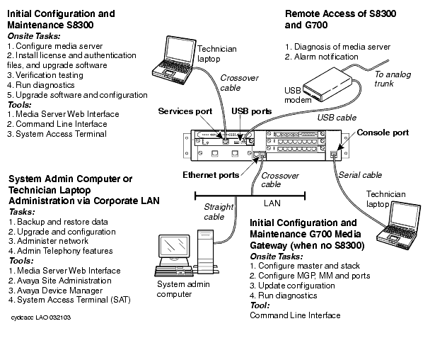 Figure 16. Summary of S8300 and G700 Access Methods and Tasks
